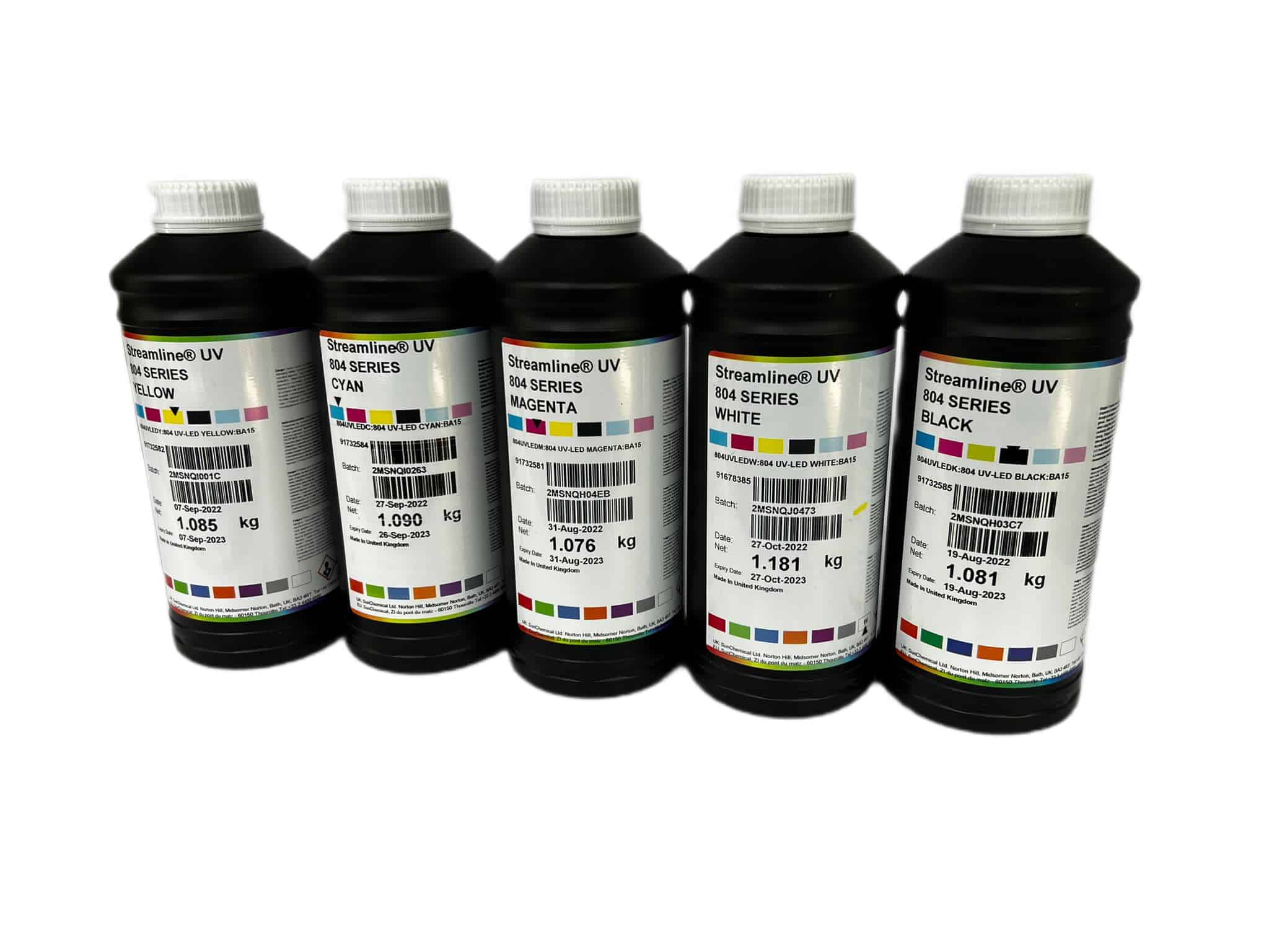 Atramenty zapewniają stabilność wydruku, wytrzymałość na załamania oraz doskonałe krycie bieli. Seria Streamline 804 nadają się do drukowania na różnorodnych – sztywnych podłożach – zarówno elastycznych, rolowych, hybrydowych jak i płaskich. Sprawdzą się w drukarkach UV utrwalanych tradycyjnymi lampami UV jak również UV LED.
